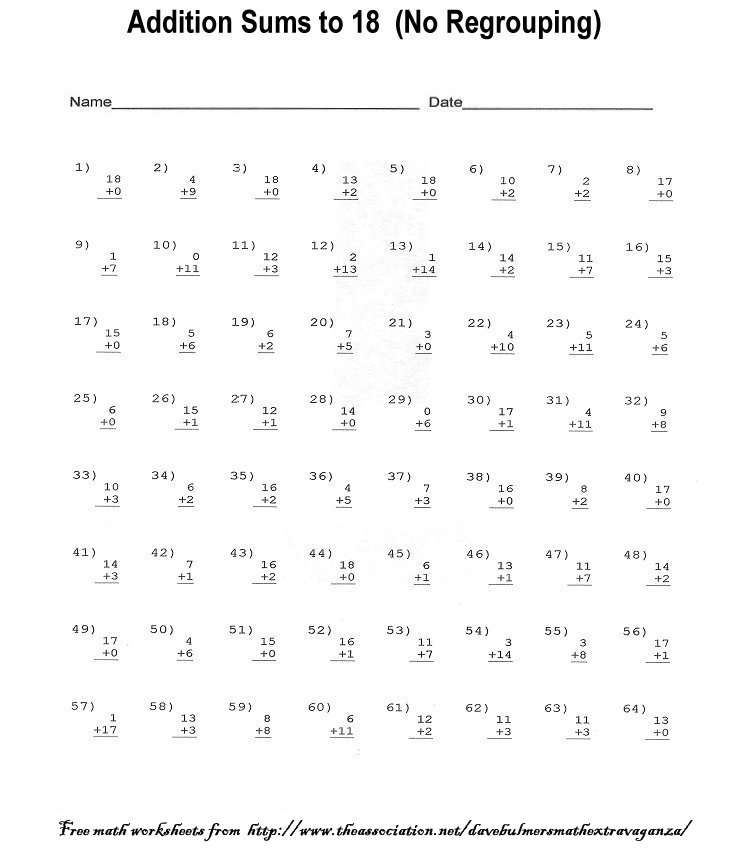 Addition Sums to 18