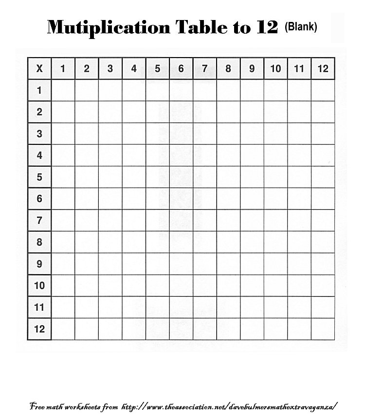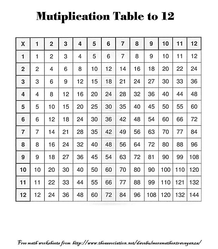 Multiplication Table to 12