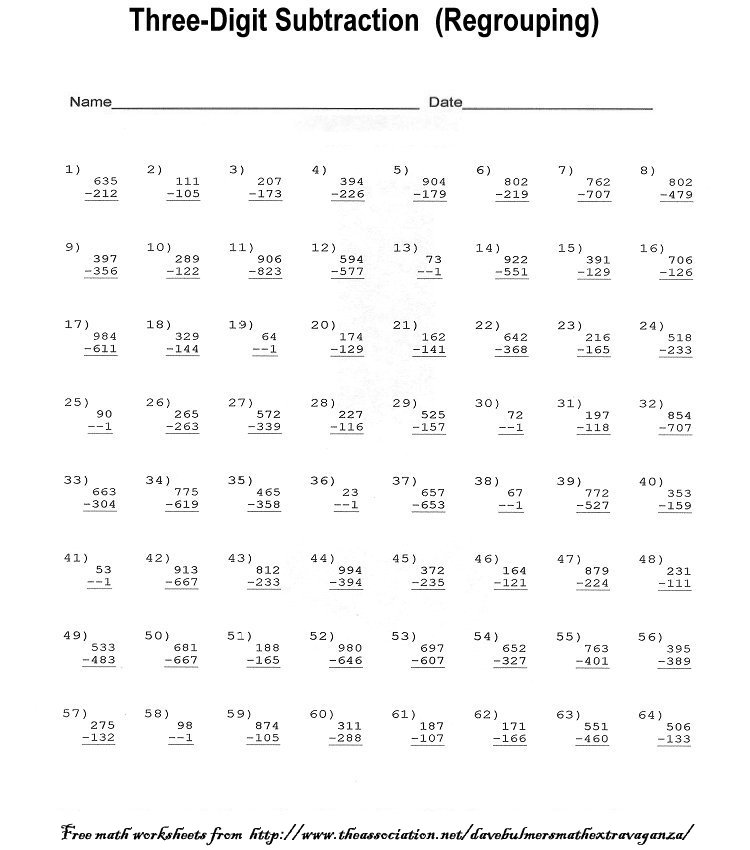 Three-Digit Subtraction